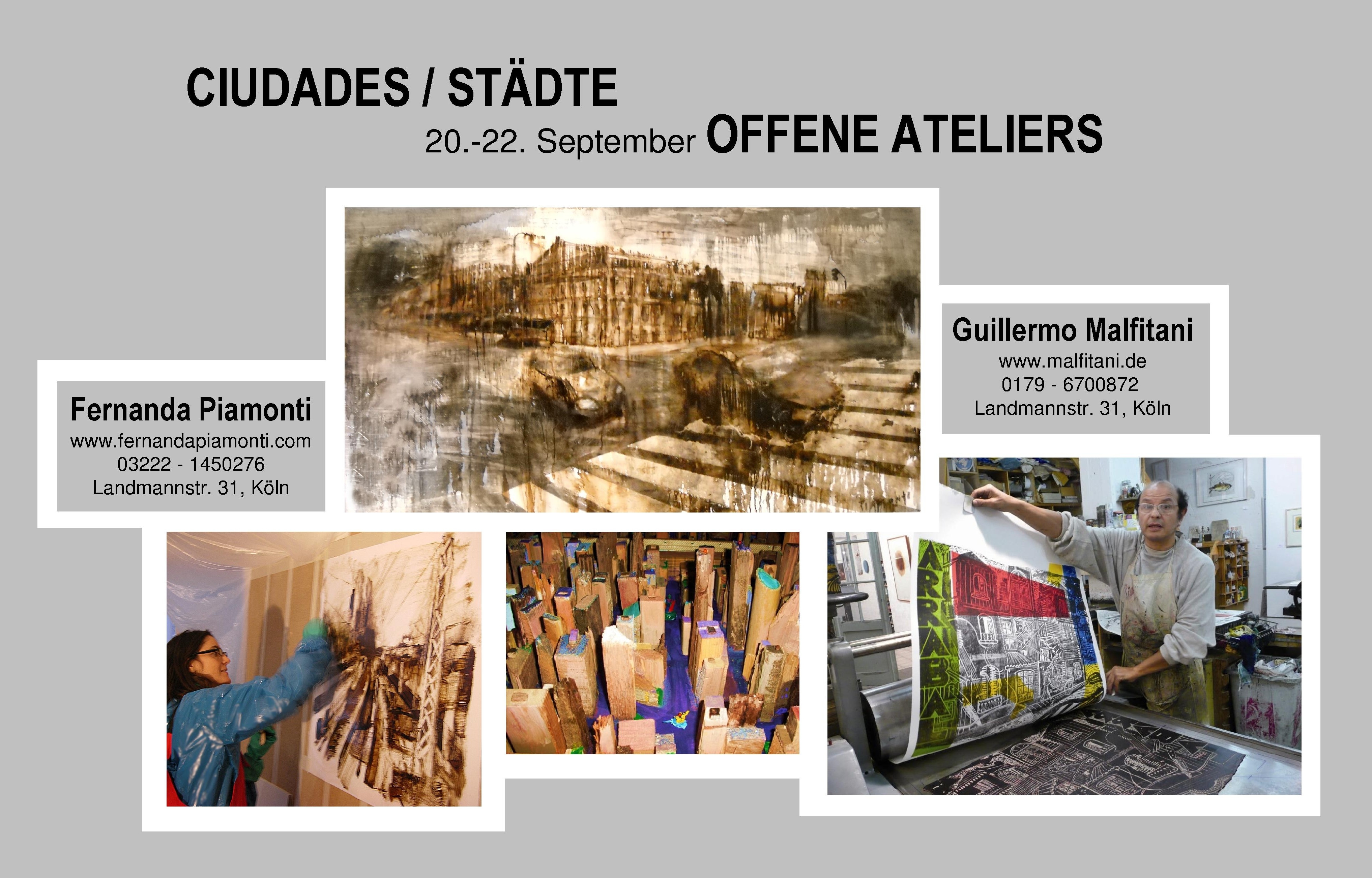 Auch die Landmannstraße 31 öffnet ihre Tür. Dieses Mal zeigen zum Thema „Städte / Ciudades“ die beiden argentinischen Künstlern Guillermo Malfitani und Fernanda Piamonti ihre Arbeiten.