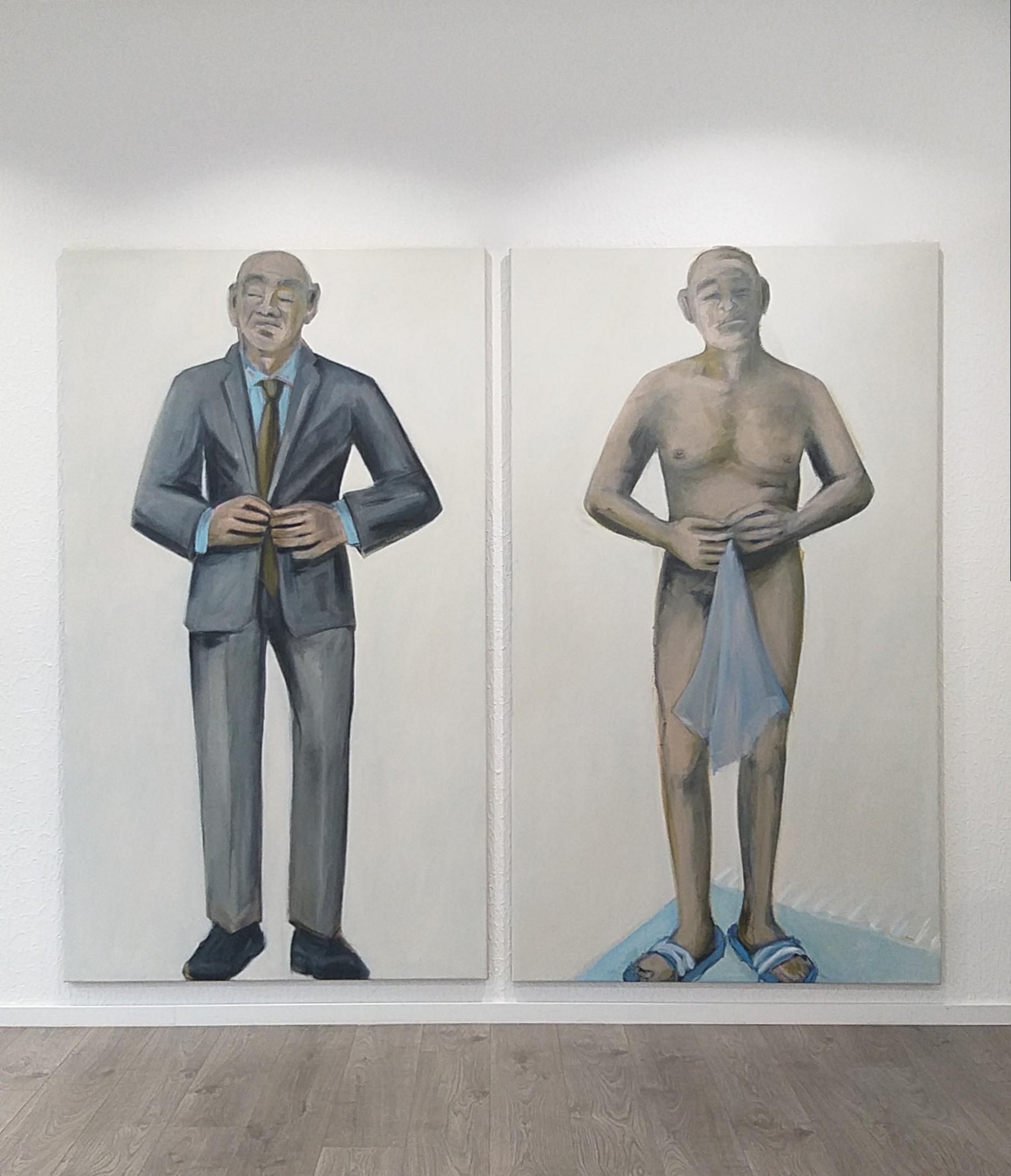 Georg Schnitzer reduziert die Erkenntnis darüber in seinen gezeigten Arbeiten aufs Wesentliche und entkleidet dafür malerisch mit Öl den Manager. Es bleibt der Mensch. Ein Wesen mit Gefühlen, Emotionen wie Angst und Verletzlichkeit. Schnitzlers zurückhaltenden Farbwahl wirkt dabei wie ein Verstärker, der dem Betrachter Raum zur Selbstreflexion öffnet.