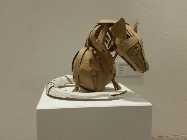 Durch die Verwendung gewöhnlicher und teils vergänglicher Materialien wie Karton fordert Beckschulte den Betrachter auf, menschliches (Fehl-)Verhalten wie Ressourcenausbeutung, Wegwerfmentalität, Obrigkeitshörigkeit und Opportunismus zu reflektieren.