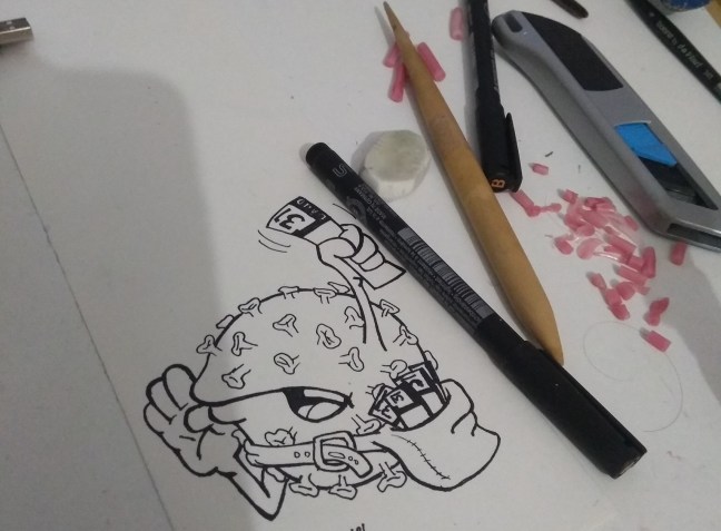 Dann die monochromen Zeichnungen von Carlos Muslera, die an sich schon eine tiefe Dynamik ausstrahlen und zum Mitfließen einladen. Nichtmals fest gerahmt und aufgezogen interagieren die technischen Strukturen mit der Vorläufigkeit.