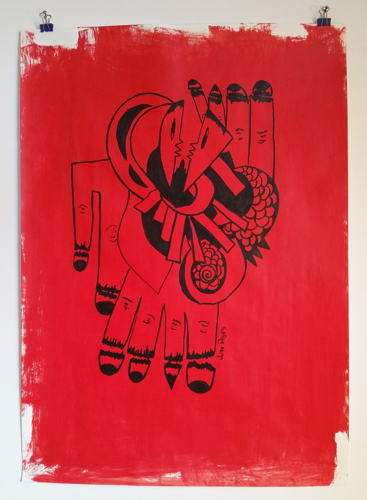 Hier zeigen wir ein Originalkunstwerk aus der Serie „Pueblos Originarios“ des argentinischen Künstlers Juan Ramón Rojas. Seine Arbeiten finden sich in Museen, Kulturzentren und Kulturhäusern in seiner Heimat Argentinien wie auch in Europa. DAS WERK: La mano que aprietaMixed Media auf Papier, 70 x 50 cm, 2019 Seit ungefähr 20 Jahren arbeitet Juan Ramón Rojas…