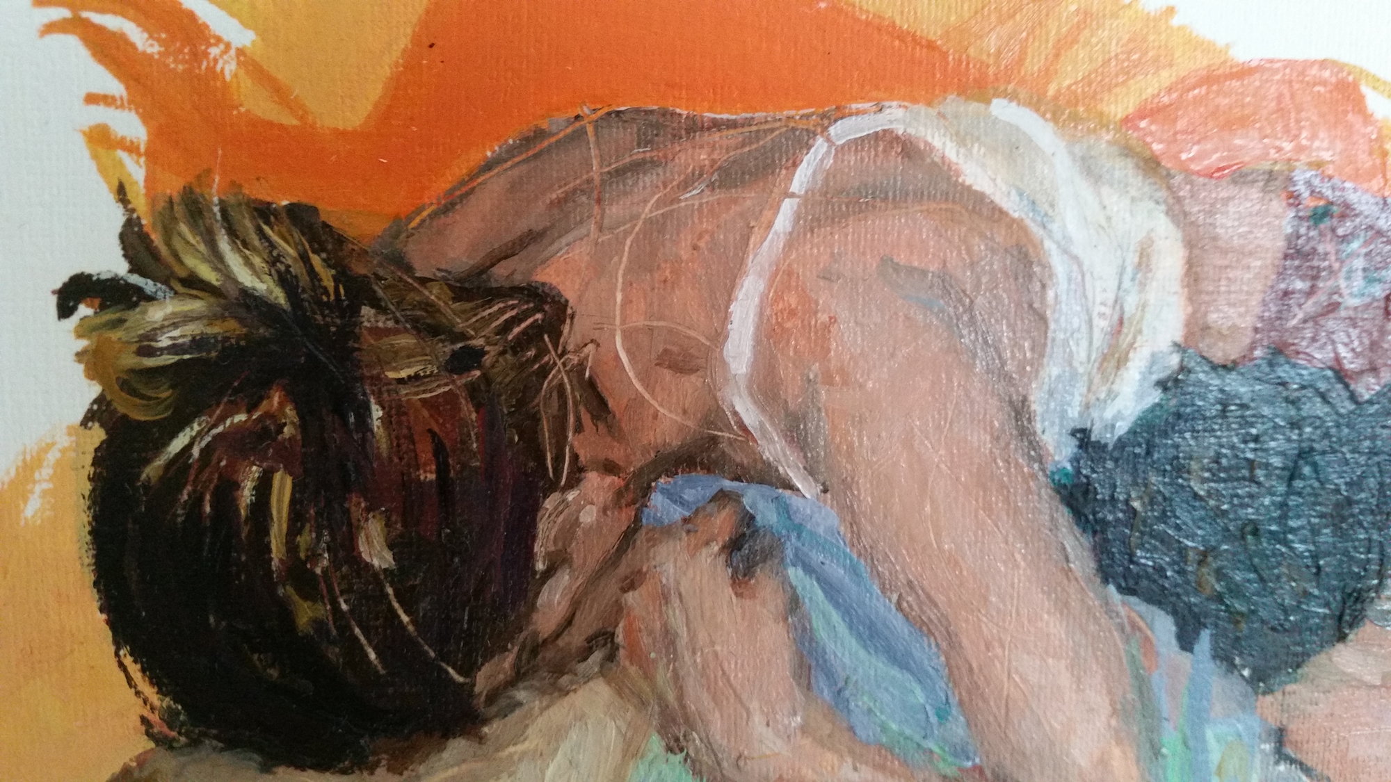 Die kulturelle Tradition erzählt von einer Seele, die dem Körper innewohnt. Aber Materie ist von größter Bedeutung und unsere Erfahrung geht nicht immer so weit. Sich gegenseitig zu umarmen bewegt uns und lässt uns schweben in einem Fluss unbekannter Herkunft und Richtung. Wir sind darin, Teil eines Symbols, das sich selbst bedeutet.