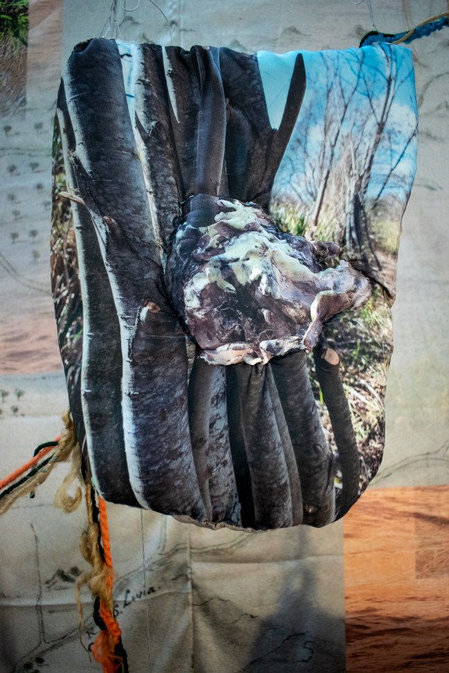 „Jede Aneignung entsteht dadurch, dass ich auf meinen täglichen Reisen den Ruf dessen wahrnehme, was in seiner Immanenz fortbesteht, was schlägt. Aus dem, was ich ergreife, indem ich es entweder aufnehme oder fotografiere, entstehen Dialoge, die diese Elemente mit anderen, die mich inspirieren, in Szene setzen. Die flachen oder raumgreifenden Arbeiten sind Installationen wie hier in LANDMANN-31.“